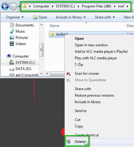 At this stage the Unifield directories are not deleted in the system. You could check it at:C:\Program Files (x86)\msf\UnifieldD:\MSF data\Unifield | ![]() |