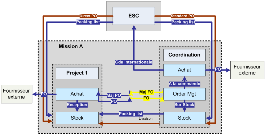 Les flux externes sont des flux entre une instance MSF et un fournisseur externe, c’est-à-dire lorsqu’un bon de commande est envoyé à un fournisseur ne constituant pas un partenaire interne (Coordination, Projet ou ESC).