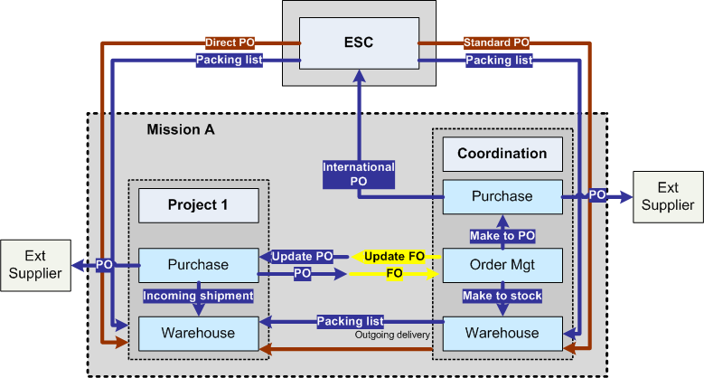 Some MSF field processes crosscut over several operational levels. The following charts will show the main functional links between Projects, Coordination, Regional supply centres, European Supply Centres and HQs.