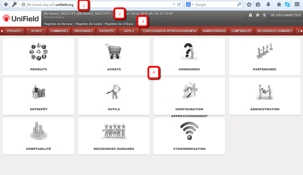 UniField contient différentes applications, chaque application contenant différents modules. Actuellement, les applications actives sont les suivantes :