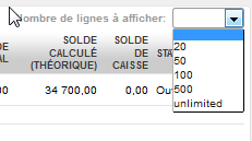 - En bas de l’écran à droite l’utilisateur peut sélectionner le volume d’entrées à afficher. Par défaut le système affiche jusqu’à 20 entrées.