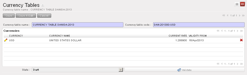 In addition to monthly currency rates, specific currency tables can be used in various situations. There may be a case where an institutional donor defines a fixed or variable rate to be used for reporting purposes. With UniField, users are able to create currency tables and attach them to a grant in order to generate donor reports with compliant rates. Please see LUFI-60301 of Chapter 6 Donor management.