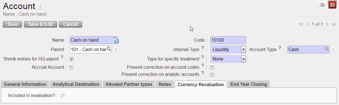 If the checkbox in the {Currency Revaluation} tab is ticked, the selected Account will be included in the month and/or year-end revaluation of the Account balances. Please refer to your OCs policies in regards to currency revaluation practices.