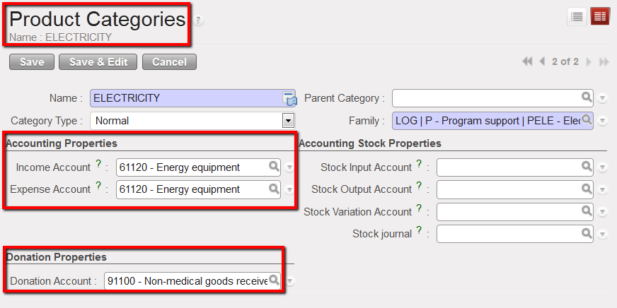 Each product category is linked to an expense and an income account (booked on the purchase journal) and a donation account (booked on the extra-accounting journal). Therefore, every time a product is selected UniField will automatically link this product to an expense account and a donation account.