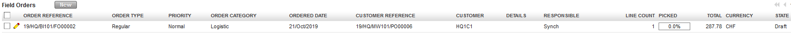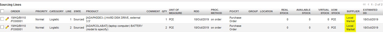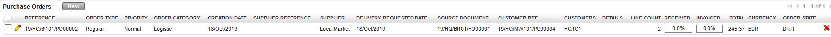 6. A PO will be automatically created in Draft sate after the sourcing in the provider mission HQ1C2, with supplier chosen during the sourcing.