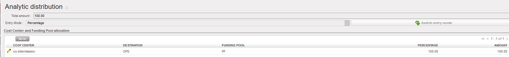 button to return back to the supplier invoice window. - Assign the analytical distribution