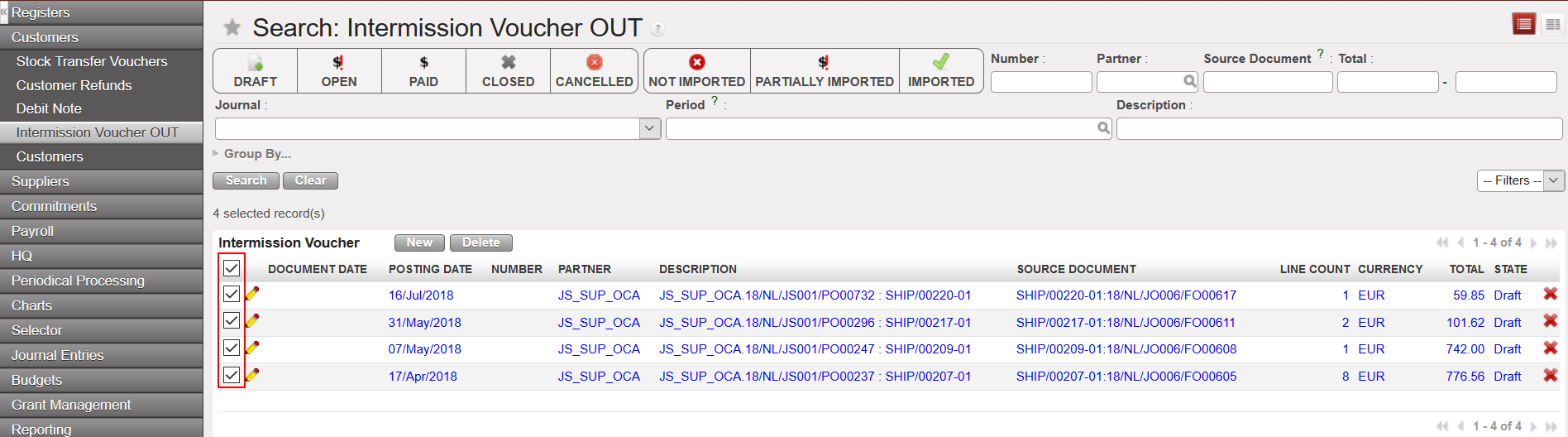 - Search for the Draft voucher by selecting the {Draft} filter or any other filter located on top of the Search view.