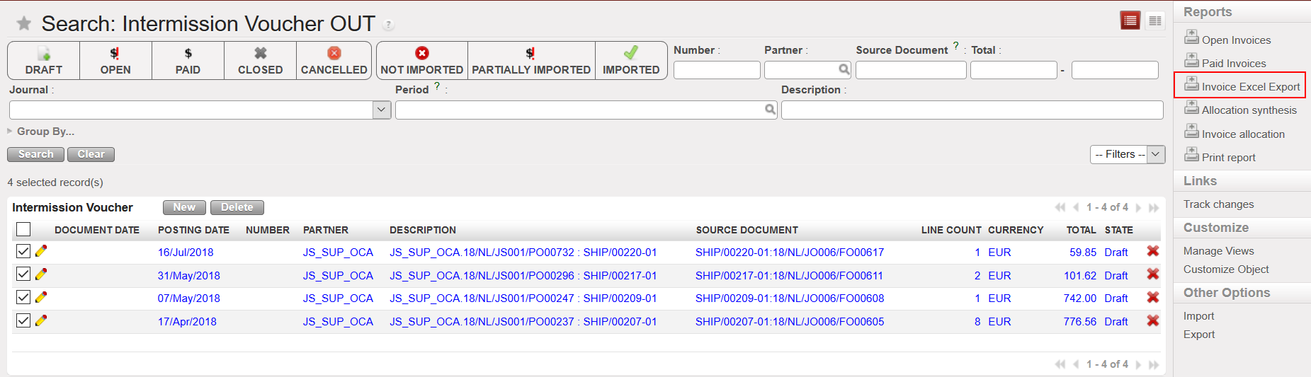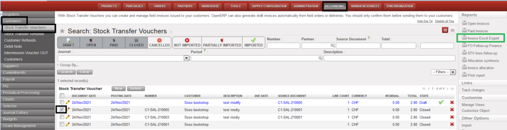 You will be able to have a new excel file called “Invoice Excel Export” from the STV in order to follow the flow.