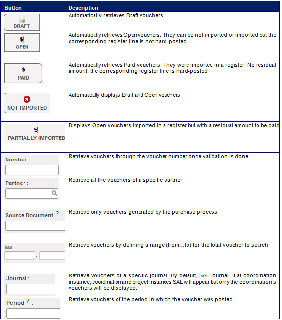 - Search for the Draft voucher by selecting the {Draft} filter or any other filters located at the top of the Search view.