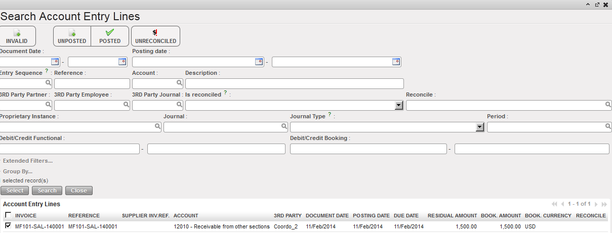 Go to Accounting/ Customers (for IVO lines)-Suppliers (for IVI lines)