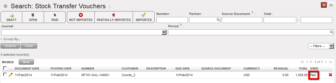 Like supplier invoices, you can delete a stock transfer voucher if the state is {Draft}