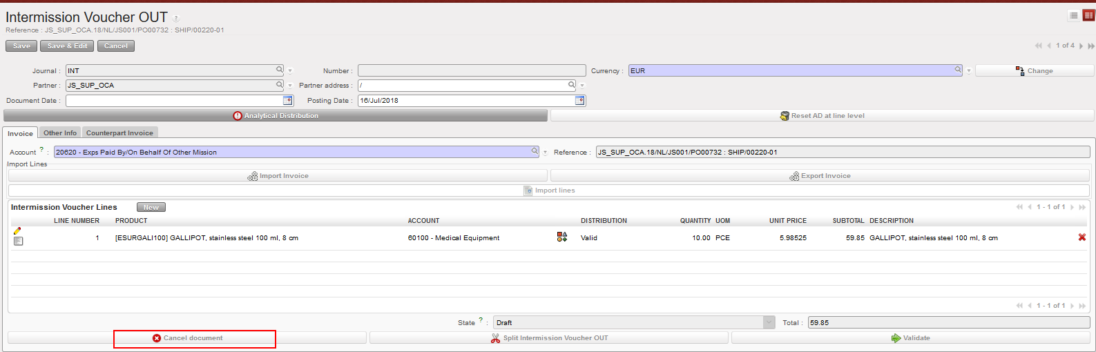If the draft IVO or STV were cancelled, they won’t be synchronized to the other counterpart intermission / intersectional instance and no more further actions will be possible on that object (no duplicate, no validate, no refund).