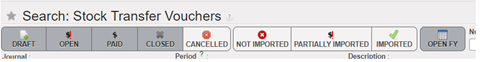 A series of filters is available in the {Stock Transfer Vouchers} Search view to help you retrieve a voucher.