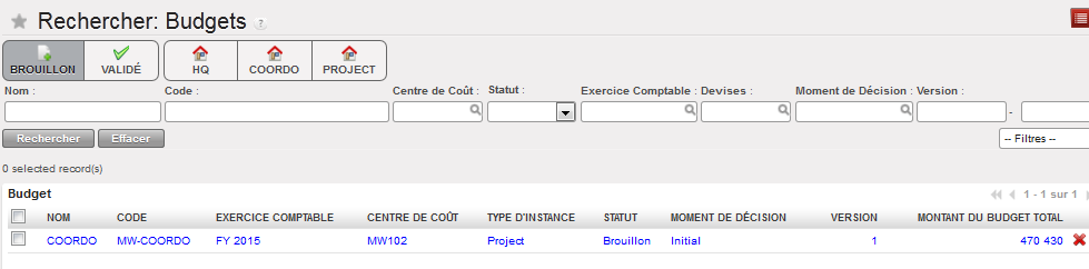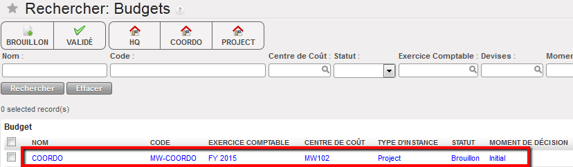 Lorsque les budgets du projet sont validés au niveau du projet, ils sont synchronisés vers la coordination.