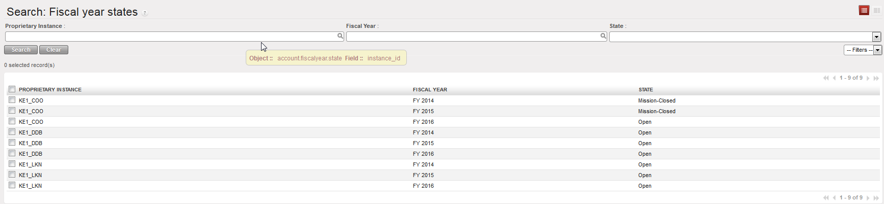 As for the period status, it is possible at a parent instance level to have an overview of the fiscal year states of the children instance. For example, at HQ level, it is possible to see the status of the periods of all its missions.