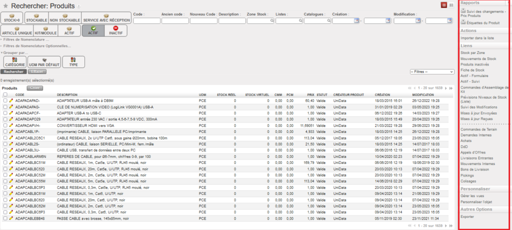 A. La gestion des produits sous UniField