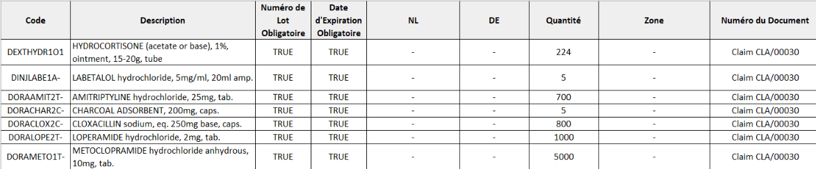 Rapport d’incohérence des produits – Numéro de Lot/ Date d’Expiration
