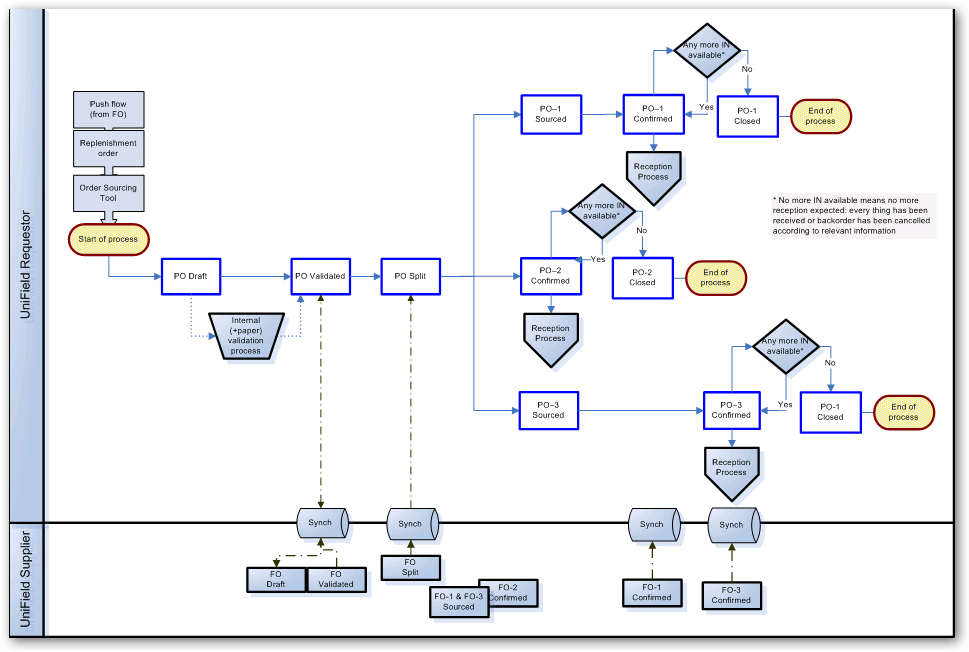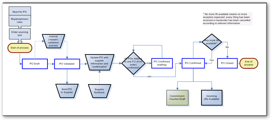 Un Bon de Commande (PO) est utilisé pour s’approvisionner auprès d’une source externe à l’instance. Un PO peut être adressé à différents types de partenaires: internes, inter-missions ou inter-sections (le PO passera par le moteur de synchronisation), externes ou ESC (le PO ne passera pas par le moteur de synchronisation).