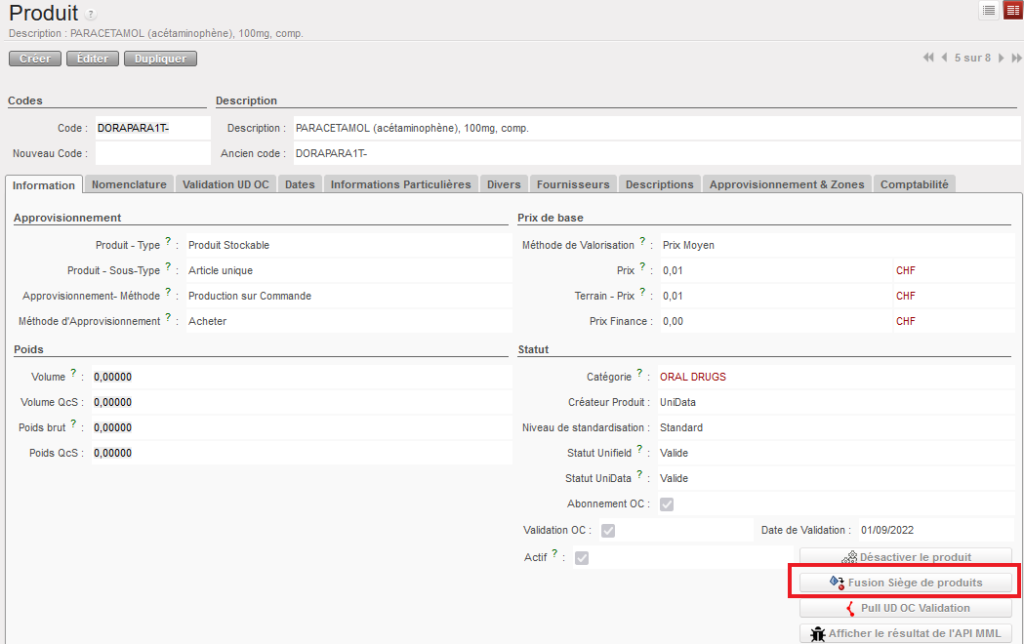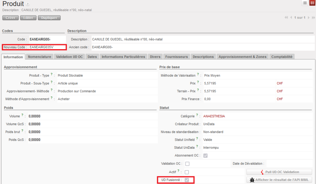 UniData can take the decision that multiple existing UniData products actually only match with 1 product, and therefore there is a decision to “merge” these products so that only one is considered the “true” valid product. This “valid” product might need a new code and description (écrasement).
