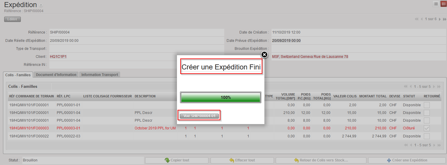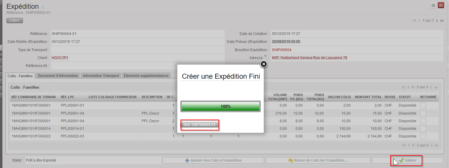7. Puis cliquez sur le bouton “Voir SHIP/000XY-AB” du pop up “Créer une Expédition Finie”