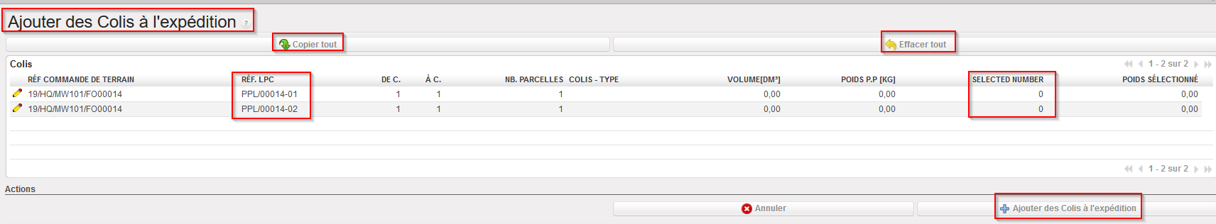 | Ajout de Colis à l’Expédition – Liste des PPL du Main SHIP |