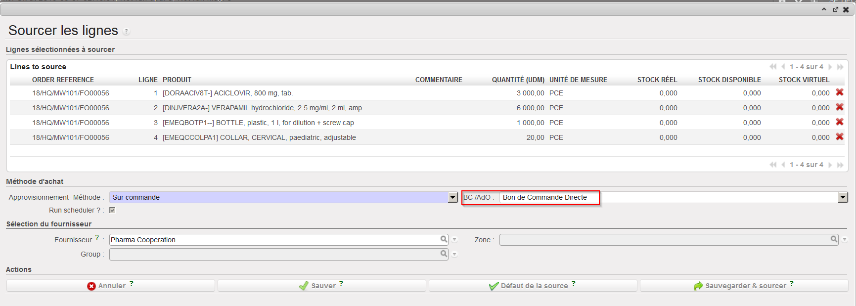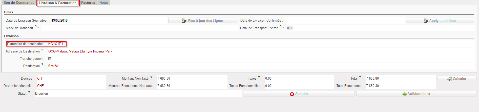 - Complétez les informations d’entête (Type de Commande – laissez-la à “Normal” –, Catégorie de la commande, Détails,…).