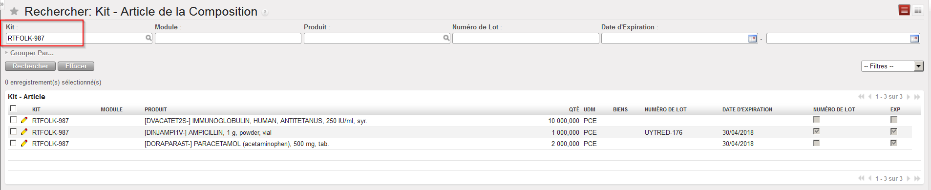 - Des filtres avancés comme le Partenaire spécifique, Produit spécifique, Liste produits, Lot spécifique ou Date d’expiration spécifique peuvent être utilisés