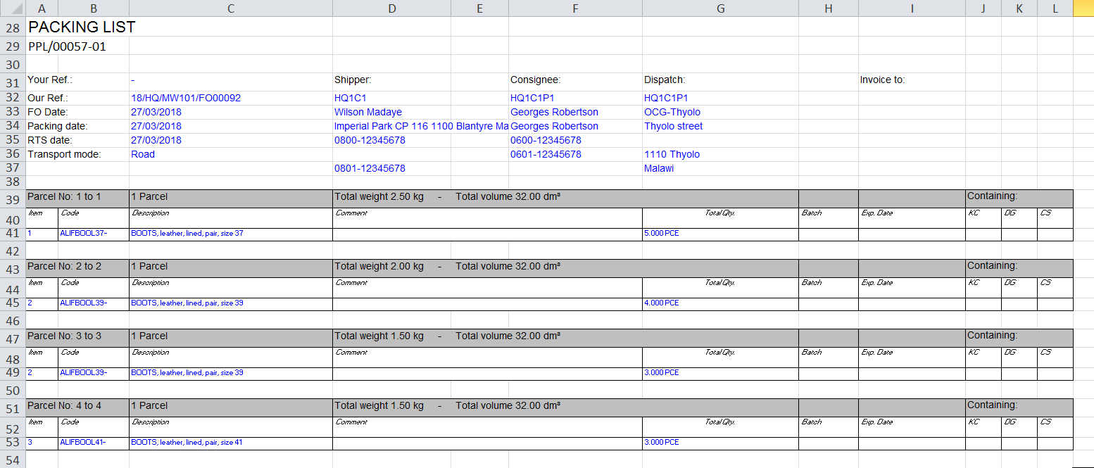 8. The “Packing List (xls)” option allows exporting to Excel all the packing lists (including parcels details) included in the shipment.