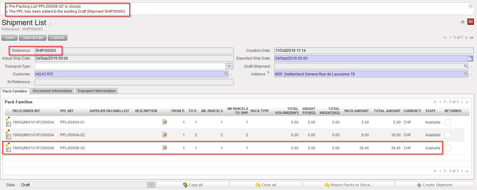 PPL added to an Existing SHIP ( after clicking on “Process”) – Quick flow |