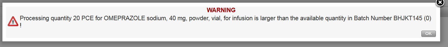 The Search Batch Number popup screen will by default display the Real /Available (depending on filter) batches with quantity > 0 for the selected location only.