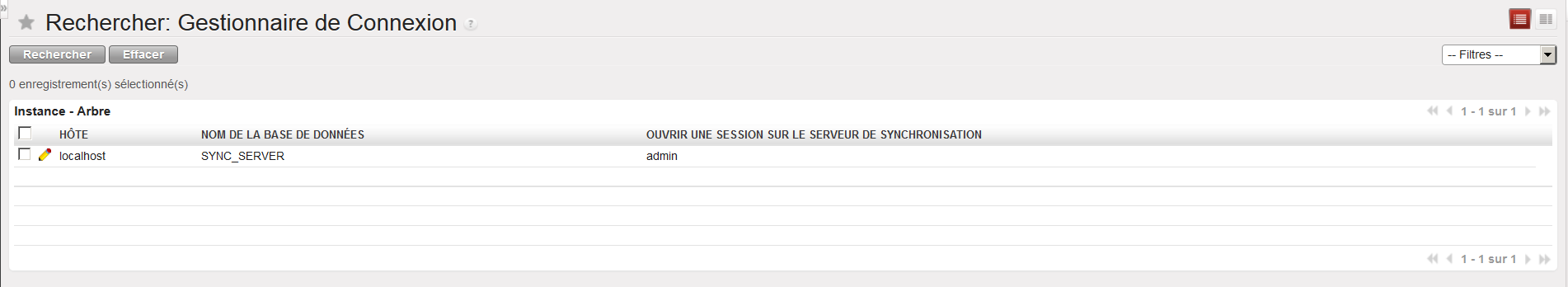 Une seule ligne apparait. Elle représente la connexion au serveur de synchronisation.