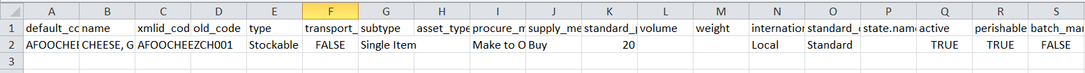 Les produits locaux utilisés sur la mission doivent être importés depuis un fichier CSV avec un format spécifique. Pour construire ce fichier, tous les codes locaux et leurs attributs peuvent être entrés dans un outil Excel (contactez votre OC pour en obtenir la dernière version ou voyez le ticket JIRA US-1286) depuis lequel un fichier (CSV) importable peut être créé en cliquant sur le bouton “Create csv file”. Le fichier CSV est créé dans le répertoire D:\ de votre ordinateur (D:\product.product1.csv).