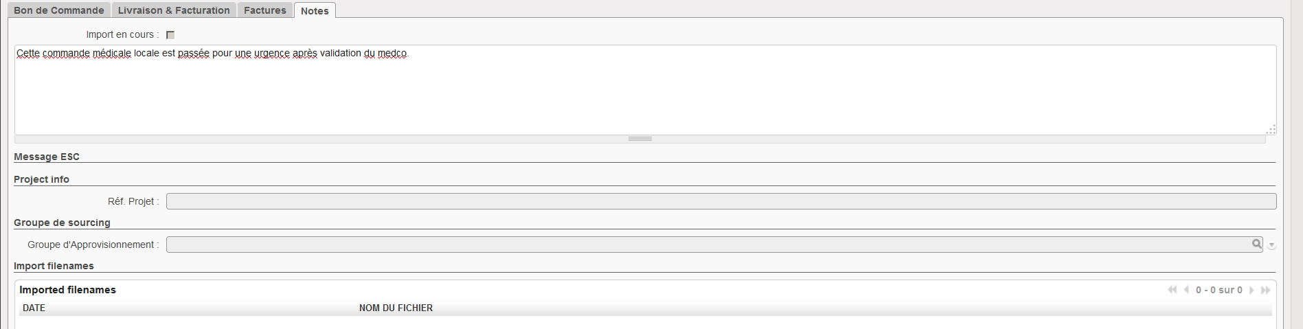 Vous pouvez utiliser l’onglet “Notes” si vous souhaitez insérer des informations supplémentaires liées à la PO.
