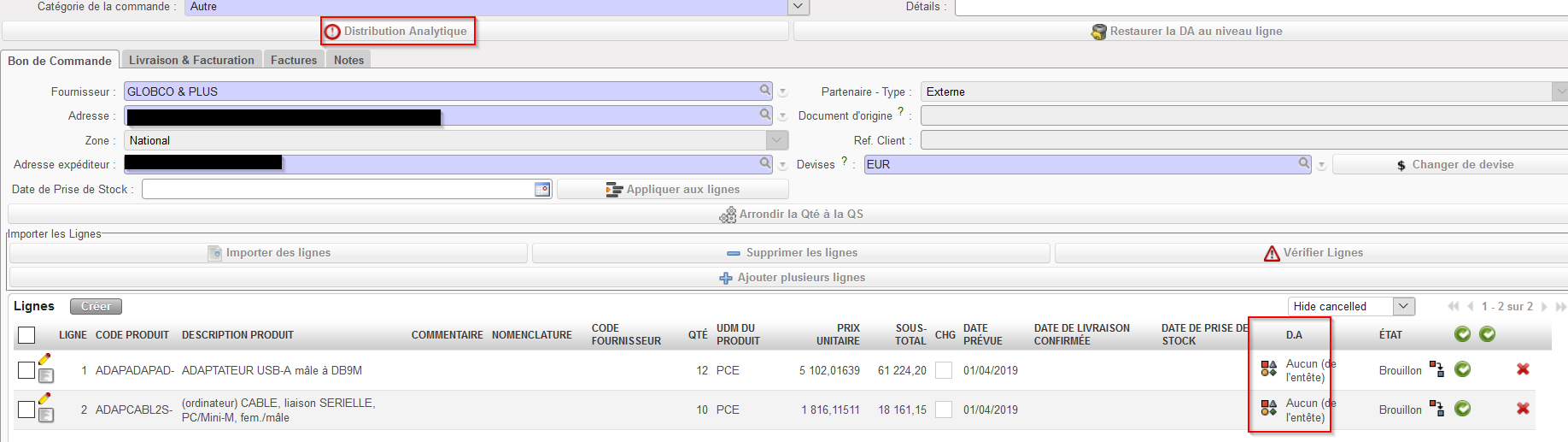 Ajouter la Distribution Analytique sur un PO