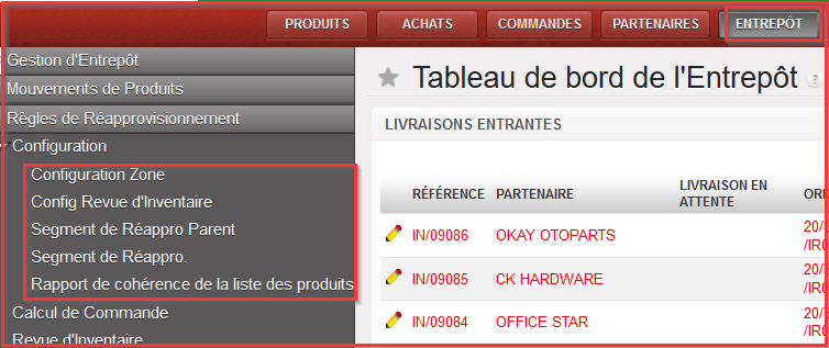 Aller à: Entrepôt /Règles de Réapprovisionnement / Configuration