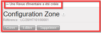 6. Cliquer sur “Sauvegarder” et voyez le message “Une revue d’Inventaire a été créée” ce qui correspond à l’étape suivante.