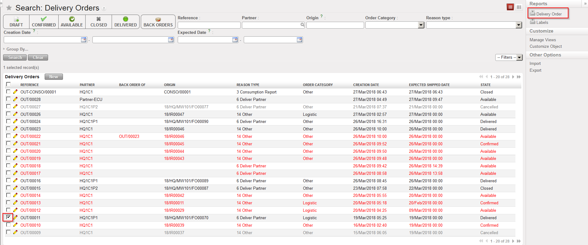 Go to: Warehouse / Warehouse Management / Deliveries / Delivery Orders