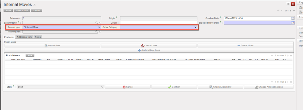 | Creating a new Internal Move |