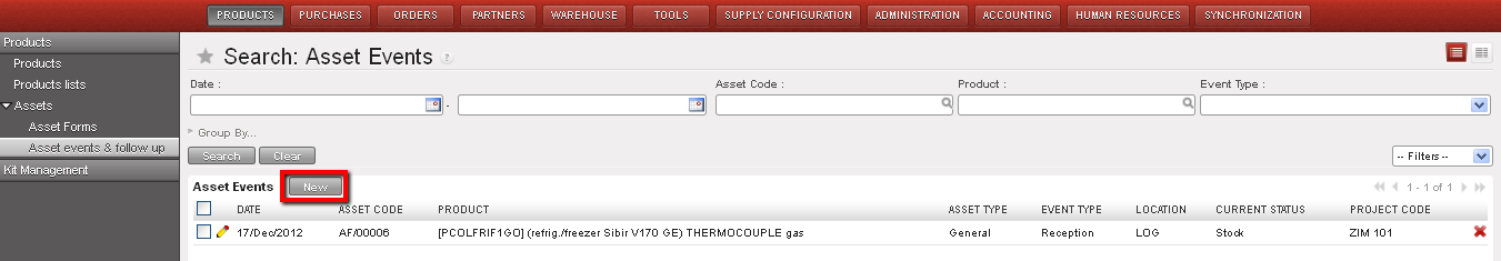 Supply User Manual ENG -> Products -> 3.5 Assets -> C. How to record an asset event