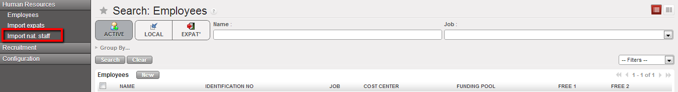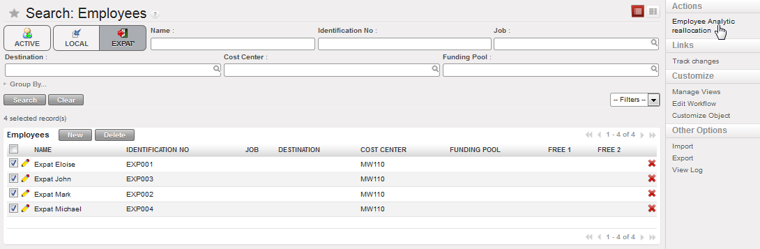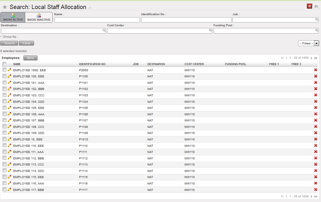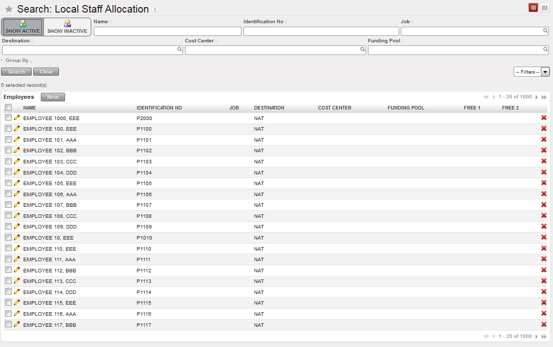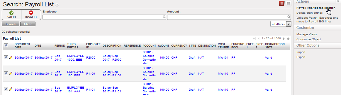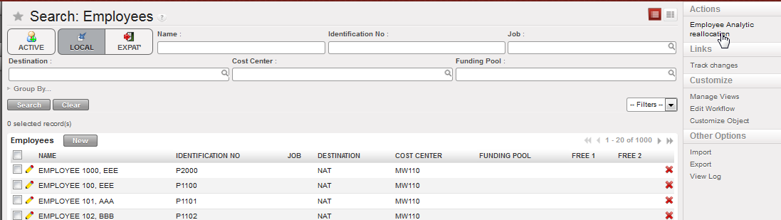 Employee Analytical reallocation performed on national staff (for sections not using Homer)