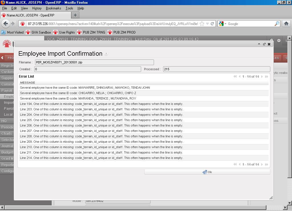 - 13210 – Salary Advance for national staff. If your mission entered salary advance in Homere, there will be an additional salary entry from the Homere import. If you followed the instructions above and made a manual entry for mid-month salary advance AND reconciled the entry in journals, the amount will no longer appear here. If the mid-month salary amount is still in the pending payment screen you should NOT import it or your cash/bank balance will be decreased twice for the same expense.