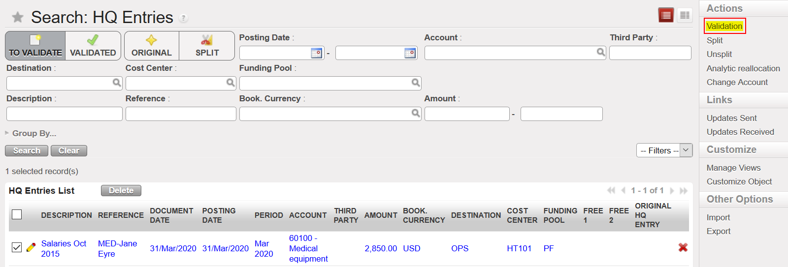 Only Coordination can correct and validate the HQ entries, any correction done at HQ entries will be booked in the HQ DO journal (ODHQ).
