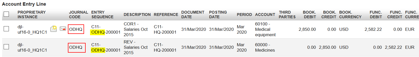 3. The correction of the HQ entry for both the reversal and the correction will be booked in the HQ correction journal (ODHQ).
