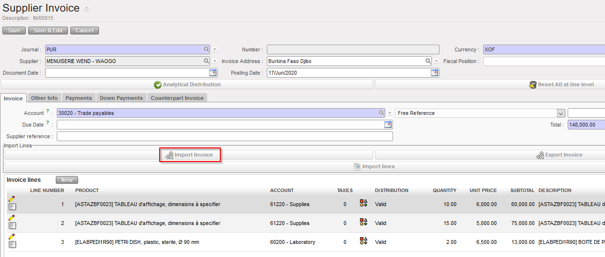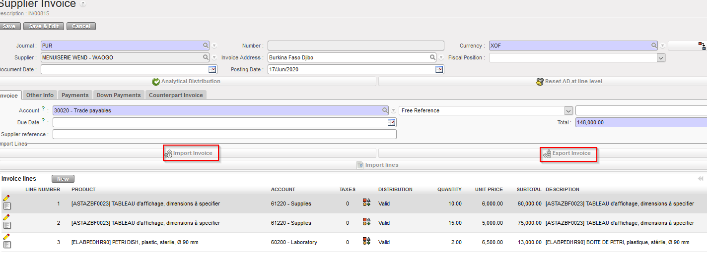 There will be a new functionality to export and to import the invoices lines via an excel file in order to do modifications in an easy and quick way (this feature exists already for the Purchase orders).