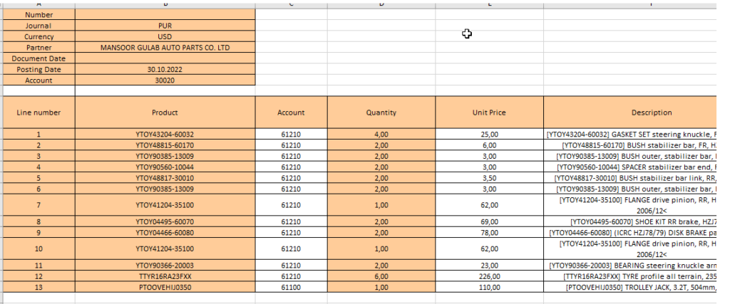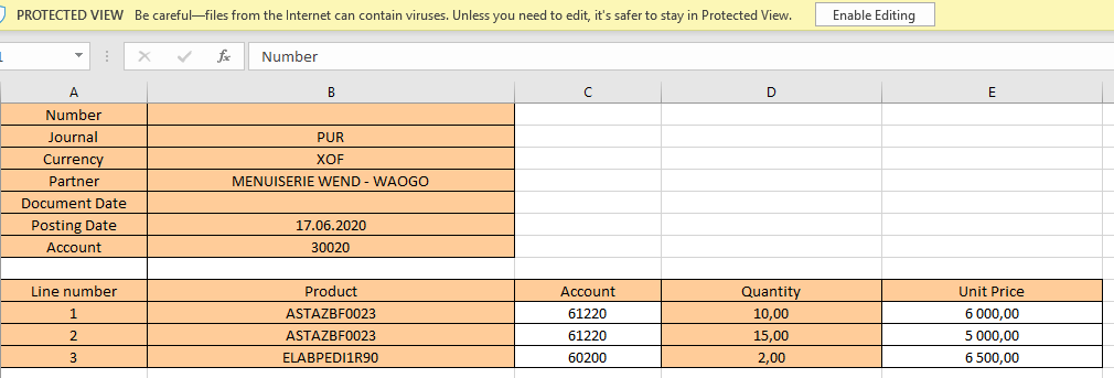 The following restrictions in the forms regarding the fields “Product” and “Quantity” will be applied in the Excel file. The fields will be not editable if: