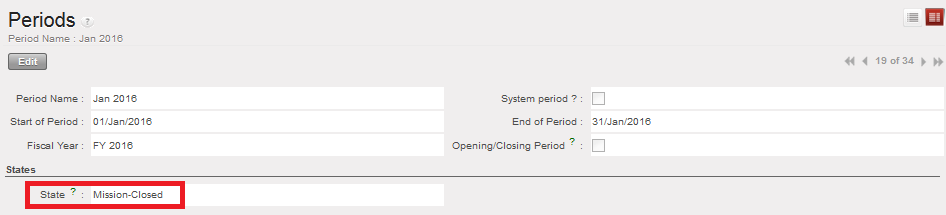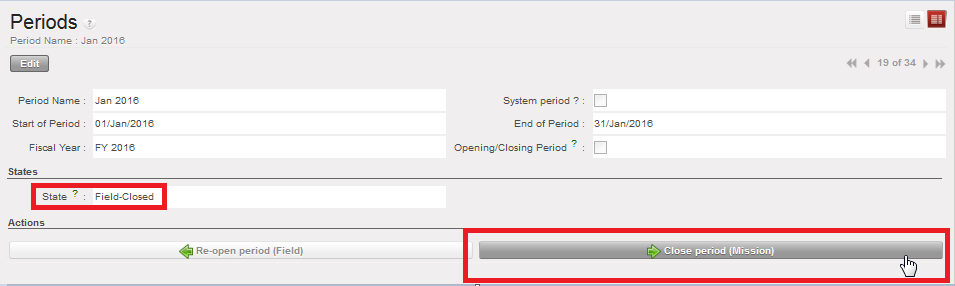 Once the Fiscal Year is closed at the coordination and the fiscal year state has changed to {Mission-closed}, the fiscal year state at project level is updated through synchronization and becomes {Mission-closed} as well.
