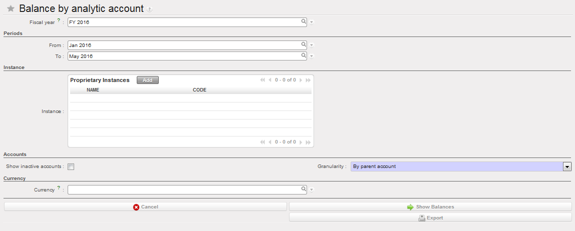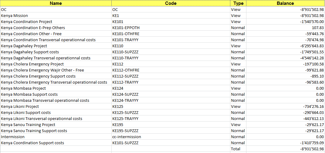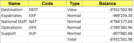 The Balance by analytic account report (XLS or list view) Excel report or viewed in UniField, lists the balance on all analytic accounts (Cost center, Destination, Funding Pool, Free 1 and Free 2). Additional note: The Balance by analytical account is a reflection of the analytical accounts balance per account.