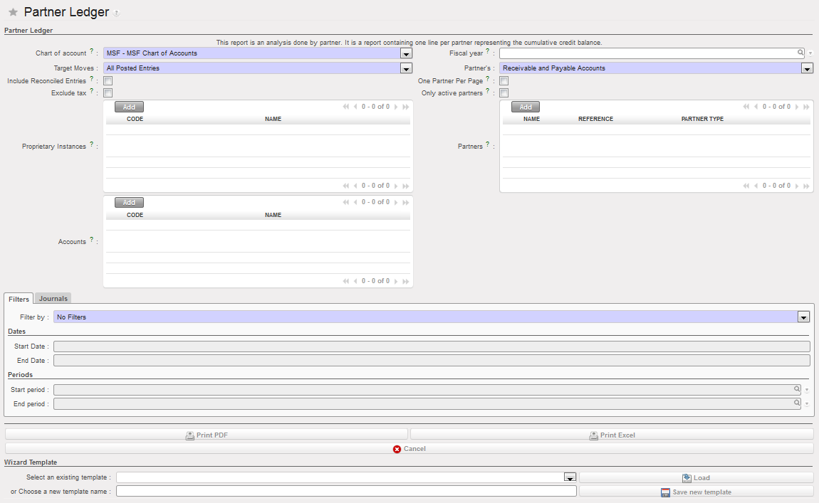 The Employee Balance report (PDF or XLS) PDF or Excel report, a complete record of all financial transactions on all employees. It is important to note that an individual employee cannot be selected for the report; all partners will be listed.