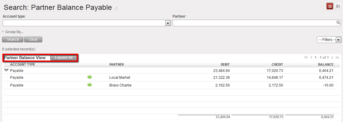 Go to Accounting > Reporting > Legal Reports > Accounting Reports > Employees > Employee Balance: