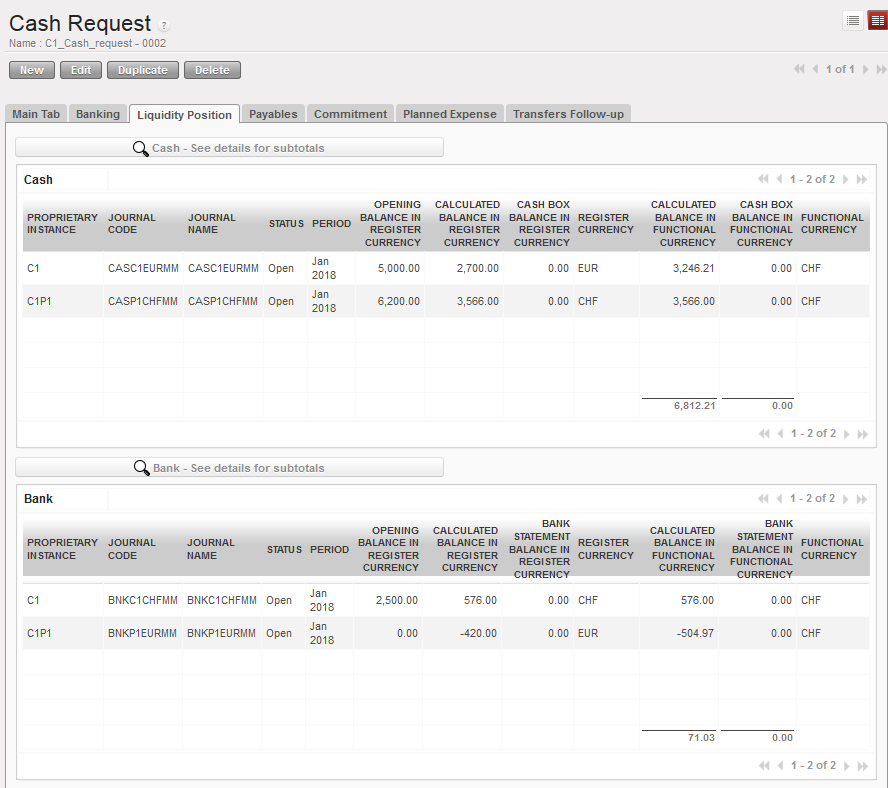 The Liquidity Balances report (PDF or XLS) PDF or Excel report of the Liquidity Position – starting and closing balances of all the register – for the selected period.